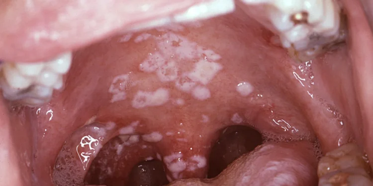 The infection appears as creamy white lesions on the tongue, inner cheeks, roof of the mouth, gums, or tonsils. These patches may look like cottage cheese and can bleed slightly if scraped. While usually mild in healthy people, it can become severe and spread in those with weakened immune systems.