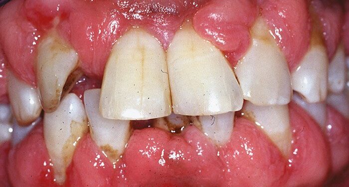 - Formation of deep pockets between teeth and gums.
